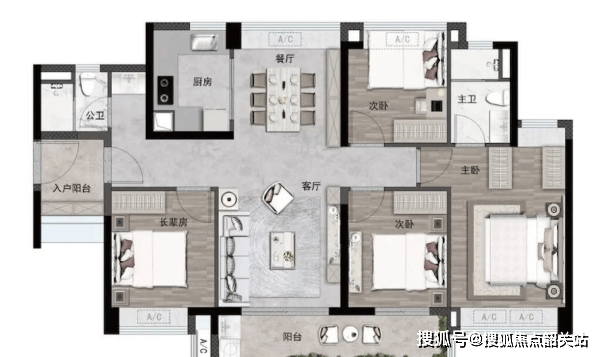 横厅设计,客厅面宽达6.2米;敞亮主卧面宽4.1米;