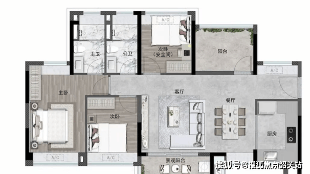 户型使用得房率约97.44%;全屋阳台占比约14.5%;