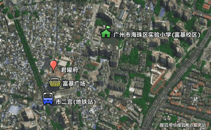 君曜府位于广州市海珠区市二宫地铁站旁,紧邻富基广场,距离地铁站不到100米,是名副其实的地铁上盖项目。尽管这是新推出的楼盘,但对于周边居民而言并不陌生。该项目最早可追溯至2013年,由广州市和联房地产开发有限公司以总价2.43亿元、楼面价1.5万元/㎡拿下的小港路151、153地块开发而成。由于历史遗留问题及法律纠纷,该地块历经多年才得以重新启动开发,并于近期以“准现房”姿态入市。