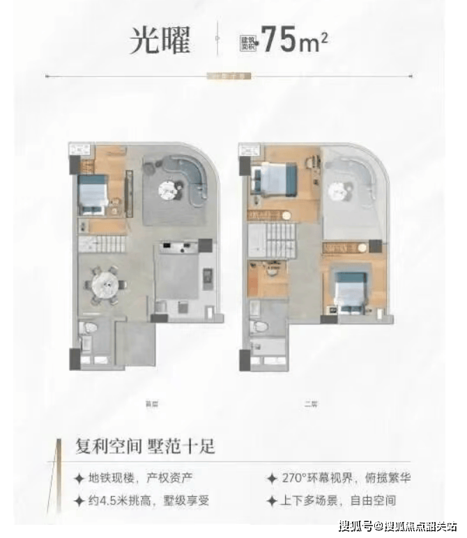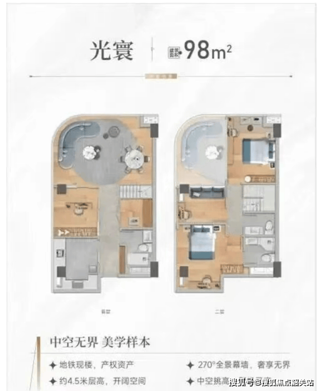 户型亮点:大面宽落地窗,270° 观景视野,4.5 米层高,空间可塑性极强