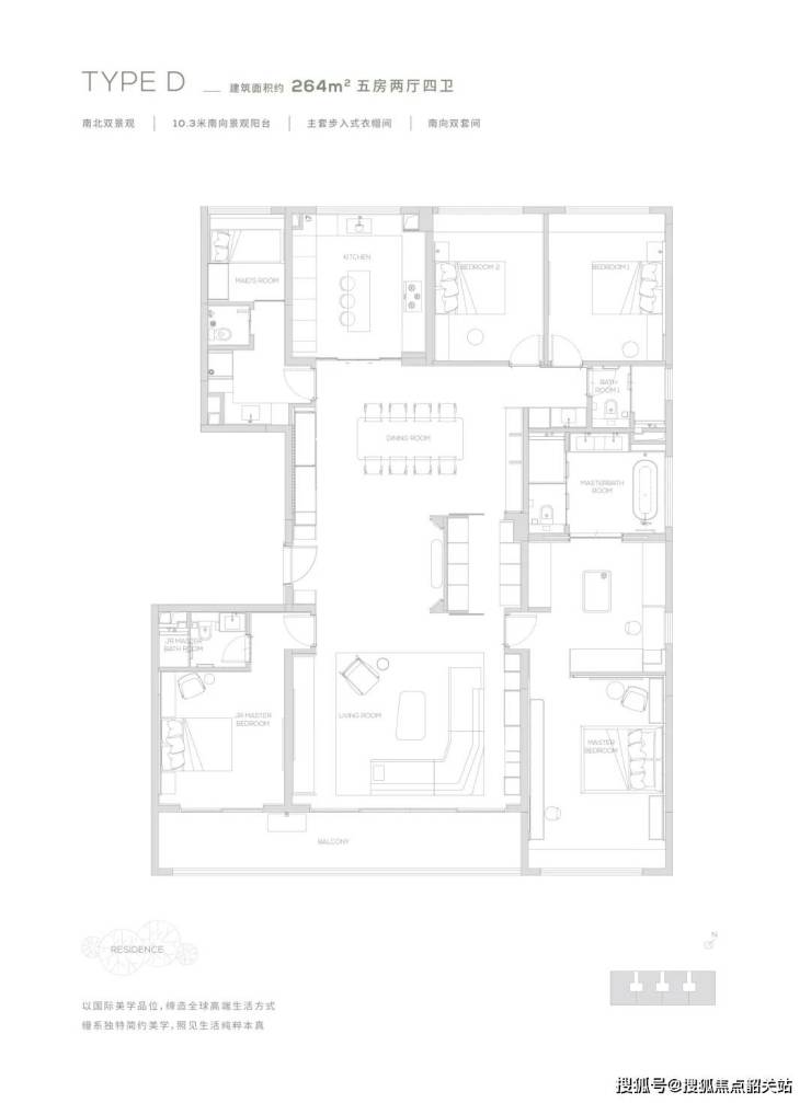264㎡五房两厅四卫:超奢华四件套南向主卧、6.6米巨型方厅、专属家政空间,彰显尊贵身份;