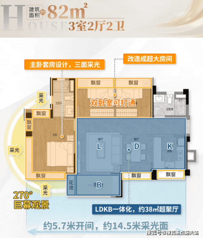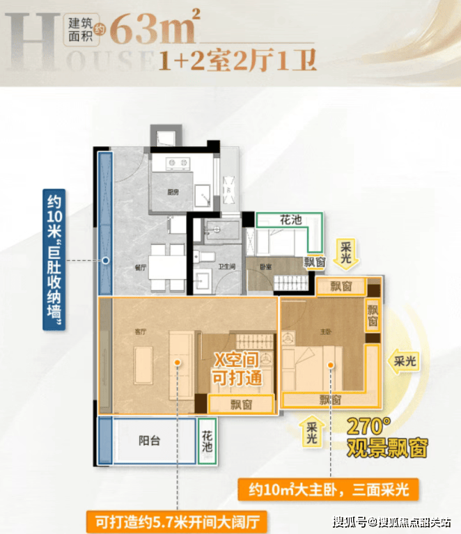具体来看,63平方米的三房两厅一卫户型,被誉为“刚需上车首选”。其107%的实用率,意味着几乎没有公摊浪费;主卧配备U型全景飘窗,不仅提升了空间感,更将窗外美景尽收眼底;得益于三江汇聚的独特地理位置,其景观视野尤为开阔;约9米的三开间大采光面,保证了室内全天候的通透明亮;LDKB(客厅、餐厅、厨房、阳台)一体化的动区设计,打破了空间隔阂,营造出开阔敞亮的公共活动区域。