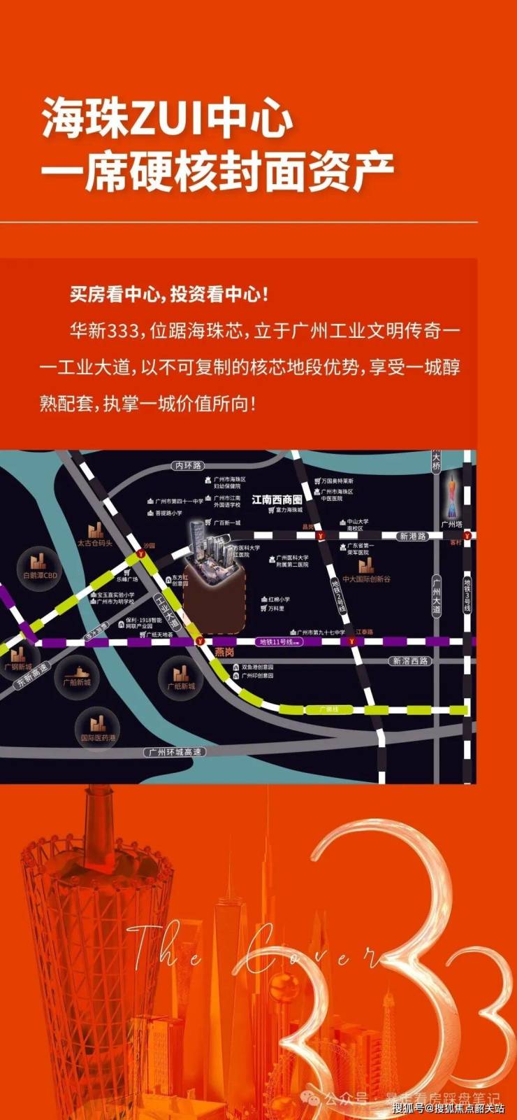 2, 海珠核心+配套拉满:自带3.5万㎡333MALL(2026年开业),周边乐峰、江南西、东晓南等5大商圈;4大三甲医院环绕(珠江医院、广医二院等)。