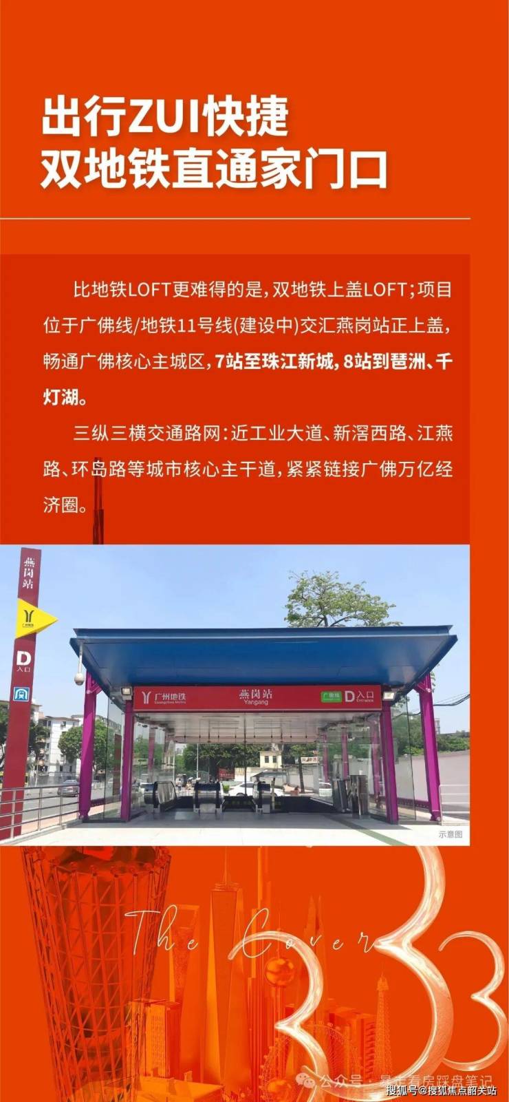 1,双地铁上盖,通勤无敌:广佛线+11号线燕岗站D口零距离直达,7站到琶洲、8站到珠江新城;自驾近工业大道/内环路,广佛通勤极快。
