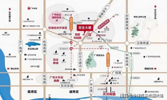 国信·未来城所在位置属于国家重点规划的太和镇TOD民营科技创新板块,西接空港经济区,东临和龙创新板块,南达白云新城,形成了一个涵盖航空、物流、创新制造、科技研发及先进交通导流的多元化产业格局。白云区的发展势能尤为突出,而本项目所在的太和镇TOD民营科技创新板块则是其核心动力之一。该区域已吸引了超过200家高科技企业入驻,包括霸王、美晨、欧派家居等知名企业,形成了强大的产业集群效应。
