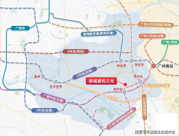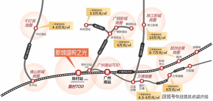 新城盛悦之光总价 150 万起,位于广州地铁 7 号线陈村站 300 米处,出门即万达广场,双轨交汇,其区位价值在国际化人才特区等多重国家战略功能加持下,优势显著。