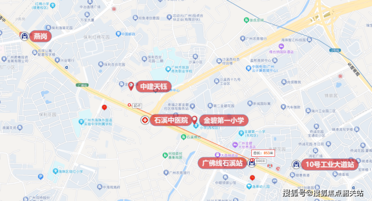 中建天钰依托主城核心区位,构建起“地铁+自驾+公交”三维一体的全维度交通路网,可实现快速通达广州全城各核心功能区,日常出行与跨区通勤均具备较高便捷度。轨道交通方面,项目距离广佛线燕岗站直线距离约800米,距离石溪站直线距离约1000米,广佛线可无缝衔接广州地铁1、2、3、8号线等多条城市核心地铁线路,1站地铁即可到达沙园站换乘8号线,3站到达沥滘站换乘3号线,可快速通达琶洲、珠江新城、体育西路等核心商圈与办公区。同时项目周边规划有地铁11号线南石路站,该线路为广州首条地铁环线,通车后可串联起广州中心城区各大核心板块,进一步提升轨道交通出行的便捷性。