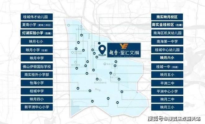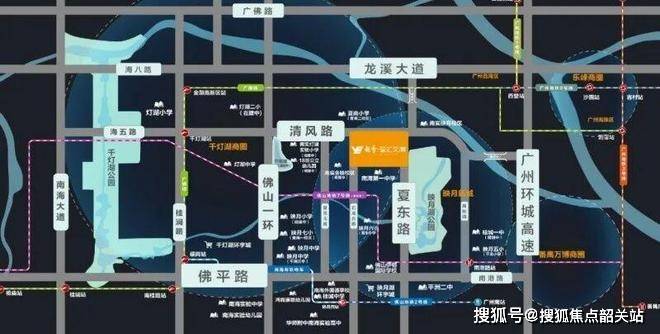 位置正好卡在千灯湖金融高新区C区和映月新城交汇处。周边清风路主干道发达,自驾到金融高新区核心区不算远,对于在金融城上班但预算有限的群体来说,是个相对实惠的选择。项目紧挨灯湖实验小学(2024年9月开学),已纳入南海实验中学教育集团,属于公办优质资源。3公里内覆盖南海实验中学映月校区(省一级,中考成绩连续19年南海区榜首)和金桂高中(石门系管理),教育链条完整,孩子上学基本实现“一路之隔”或短距离步行,父母接送负担小。