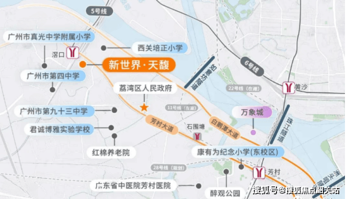 除了5号线,项目周边还实现了与6号线、11号线、22号线的无缝接驳。11号线作为广州首条大环线,将把整个主城区紧密串联;22号线则是一条快线,直通番禺广场及南沙方向,极大地拓展了城市的辐射半径。这种“四轨交汇”的交通格局,在白鹅潭乃至整个广州都是极为罕见的。