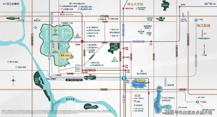 狮山作为经济强镇,区府所在区域往往是政治、经济、文化的中心,项目临近区府周边,能够享受到完善的政务配套和优质的公共服务。同时,项目距离佛山地铁4号线、8号线博爱湖站800米,距城轨狮山站约900米,处于TOD枢纽的辐射范围之内。TOD模式以公共交通为导向,能够带动周边商业、办公、居住等业态的发展,提升区域的价值。区府中轴带来的稳定发展环境与TOD枢纽带来的交通便利性和发展潜力形成双擎联动,相互促进,不断赋能项目及周边区域的价值跃升,使其成为极具发展潜力的置业选择。