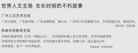 距离项目 3 公里左右,还有广州市天河外国语学校。这是一所广州市直属的公办全日制完全中学,是广东省一级学校,也是广州最顶尖的外国语学校之一。学校每年的中考和高考成绩都名列前茅,培养了一大批优秀的学生。能够进入天河外国语学校学习,是很多家长和孩子的梦想。