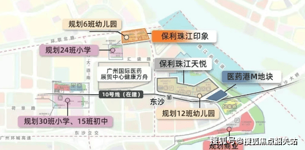 项目西南面规划有一所24班小学,办学主体已确定为康有为纪念小学,同时小区内配建有一所六班幼儿园,上学就在家门口。此外,2公里范围内还有省实广钢校区第一小学部、省实广钢校区第二小学部、华师附小等多所学校,3公里内涵盖了真光实验中学、东沙博雅实验学校等优质教育资源。初中阶段通过摇号分配,可选择西外、真光、省实广钢等多所知名中学。