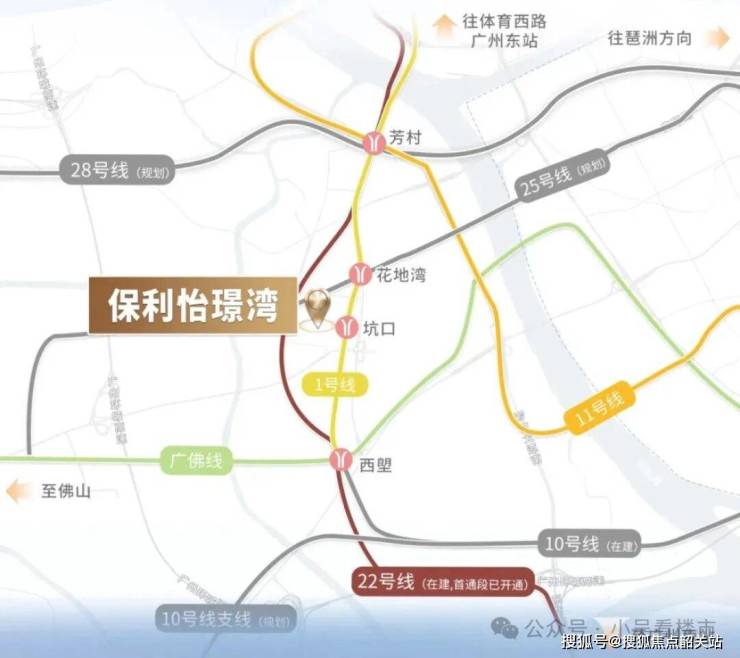 项目位于花地湾板块,就在东漖南路与东漖北路的交汇处,马路对面就是保利臻誉,相对臻誉,这里距离地铁会更近一点,步行去1号线坑口站约700米左右,经过多年发展,板块配套也很成熟了,居住人口也比较多,无论是商业还是学校,都是现成的,项目距离白鹅潭商圈也很近。