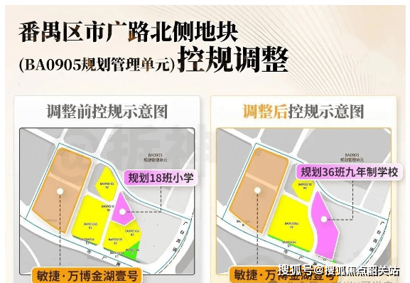 根据广州市规划和自然资源局公布的地块调规方案,项目所在的市广路北侧地块已正式调规为 36 班九年一贯制公办学校,调规方案已完成官方批前公示。