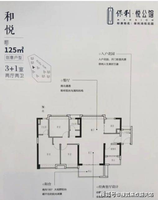 保利悦公馆整体采用南北分区布局,形成两种截然不同的居住体验: