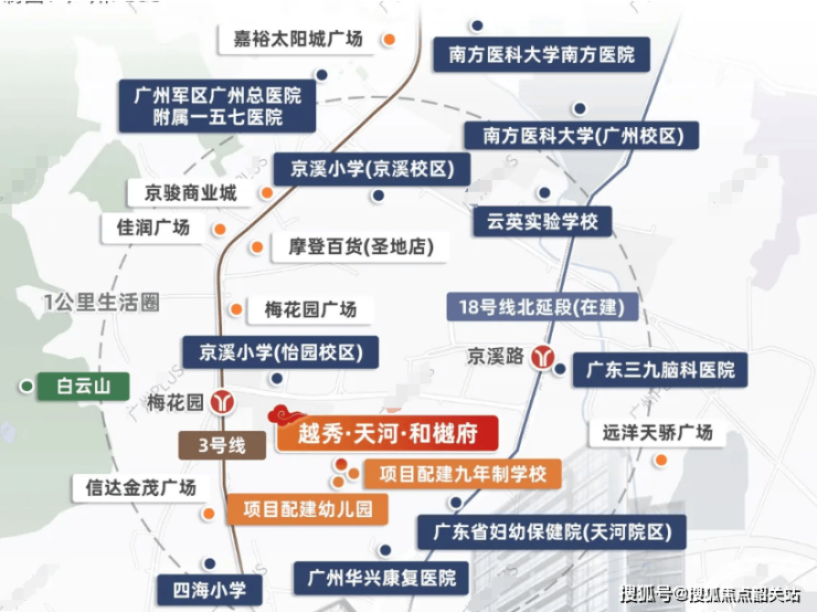 距离3号线梅花园站直线距离约400米;距离地表最强地铁18号线北延段京溪路站(在建中)约850米,预计2026年开通后1站到东站,2站到冼村,3站到琶洲。
