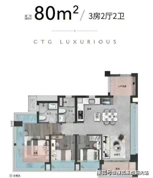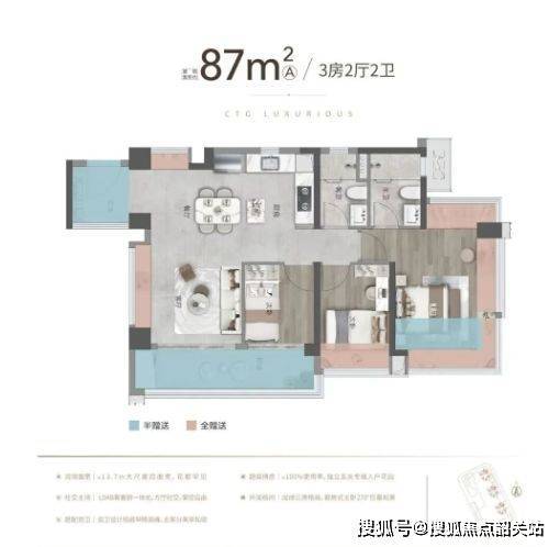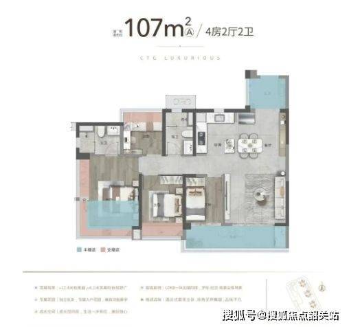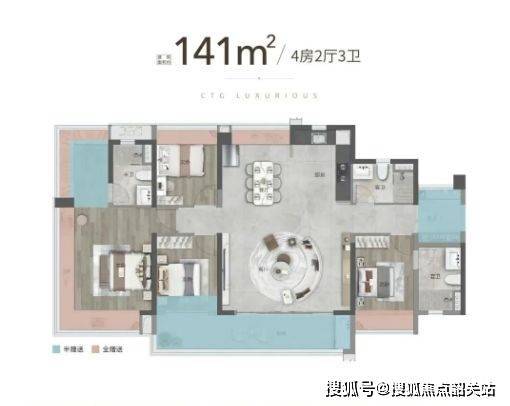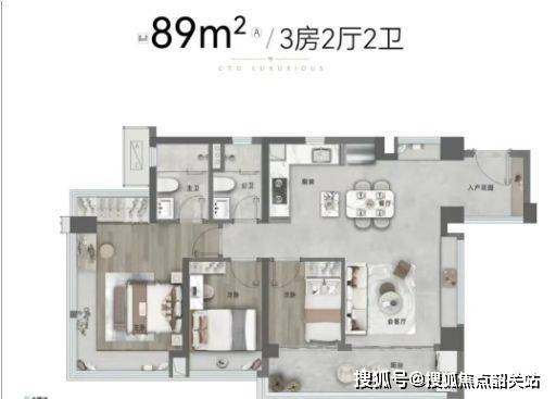 部分户型采用270度飘窗设计,实现更大面积的采光界面与观景面。项目窗地比设计可达约0.4,使居住空间在采光、视野、通风等方面提供较好的居住体验。主卧区域部分采用套房空间结构,使隐私性与功能性得到兼容。