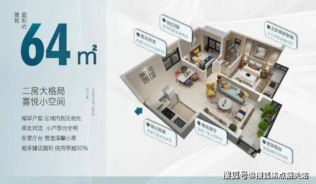 64㎡的一居室户型,布局紧凑却不失精致,空间利用达到了最大化。入户处可设置小巧的玄关柜,方便放置鞋子、包包等日常物品,保持室内整洁有序。客厅空间方正,虽然面积不大,但通过合理的家具布置,仍能营造出温馨舒适的氛围。客厅连接观景阳台,不仅增加了采光面,还可将园林美景引入室内,让居住者在闲暇时光能尽情享受阳光与自然景观,同时也可作为休闲区域,摆放桌椅,品茗阅读。