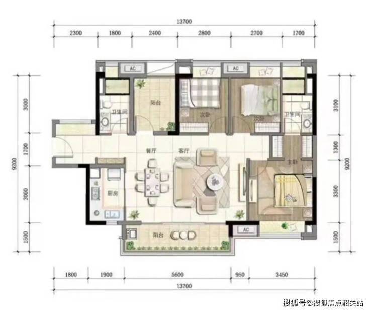 超长阳台设计,极大增加了采光面,使室内更加通透明亮。