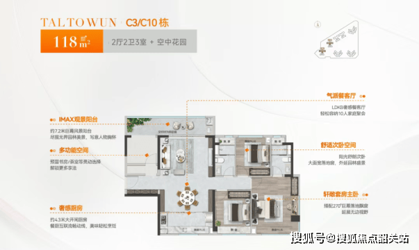 其中,93㎡三房采用经典竖厅布局,三开间朝南,搭配6.4米超宽阳台(连通客厅与次卧),采光通风俱佳,主卧配置飘窗,小户型也能拥有大尺度生活感;而118㎡四房则采用LDK一体化设计(客厅、餐厅、厨房无界贯通),7.2米观景阳台延伸生活视野,主卧套房配备独立卫浴,充分满足二孩家庭或三代同堂的多元居住需求。