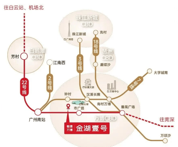 引用《广州市城市总体规划(2025版)》,明确指出番禺万博板块被定位为城市副中心,是集商务办公、商业娱乐、文化休闲等多功能于一体的综合性区域。