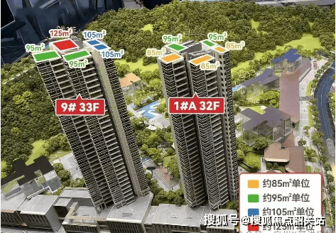 95平方米3+1房:分布在1号楼和9号楼,入户飘窗玄关,主卧270°飘窗观景。