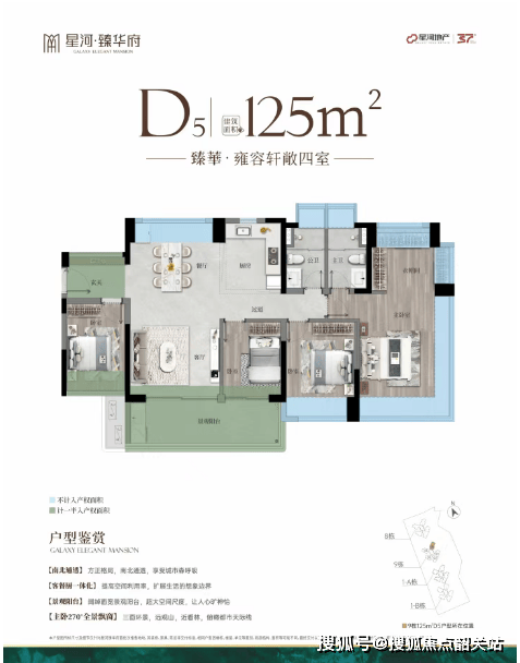 125平方米四室:分布在9号楼,迎宾入户花园,宽幕景观阳台。