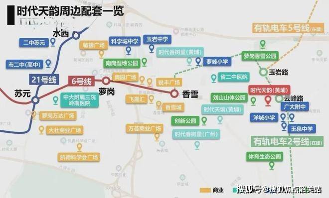 交通条件逐步完善。目前距离最近的地铁香雪站约 3.8 公里,步行不太现实,但小区门口就是黄埔有轨电车 2 号线开源大道东站,业主乘坐有轨电车 5 站就能抵达香雪,接驳 6 号线,可直达天河、海珠、越秀等地。而且规划中的 6 号线东延段和 23 号线会在附近的植树公园站交汇,未来交通便利性将进一步提升,无论是日常通勤还是出行游玩,都能为业主提供更多选择。