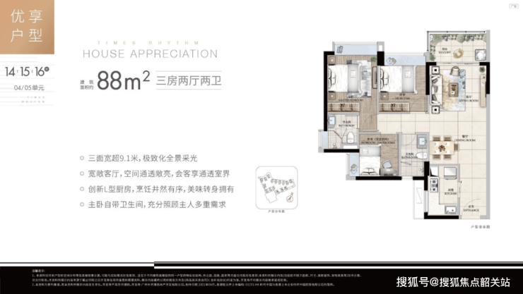 【户型】:首推建面约81-110㎡三至四房(可改)艺术美宅