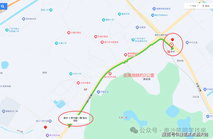 地铁 4 号线黄阁站:步行直线距离约 2 公里,实际步行 25 分钟,电动车接驳 3-5 分钟,4 号线直达琶洲、金融城、天河,约 40-50 分钟可达核心就业区,满足广州白领通勤需求;