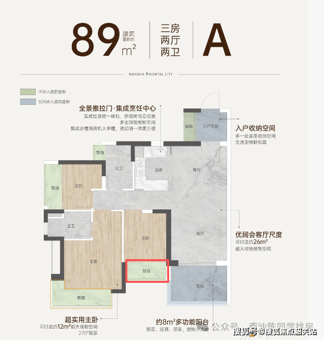 高赠送亮点:阳台深度 1.8 米(传统户型 1.5 米),半赠送面积更大,三个卧室全赠送大窗,可扩展空间,实际使用面积约 89㎡;