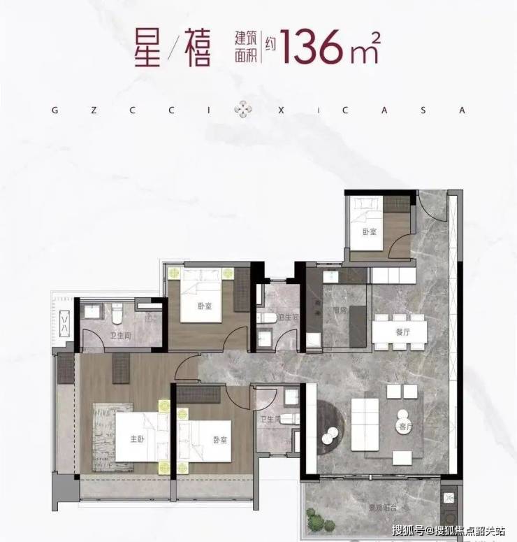 建面136平四房,无论是南向的舒适度还是各个空间的奢阔程度,都是顶级享受。