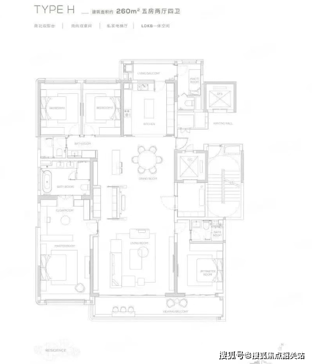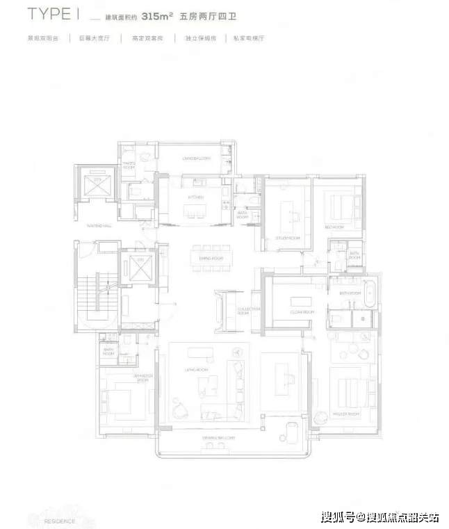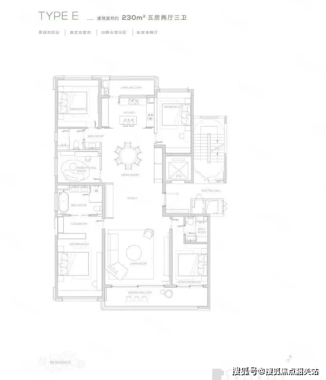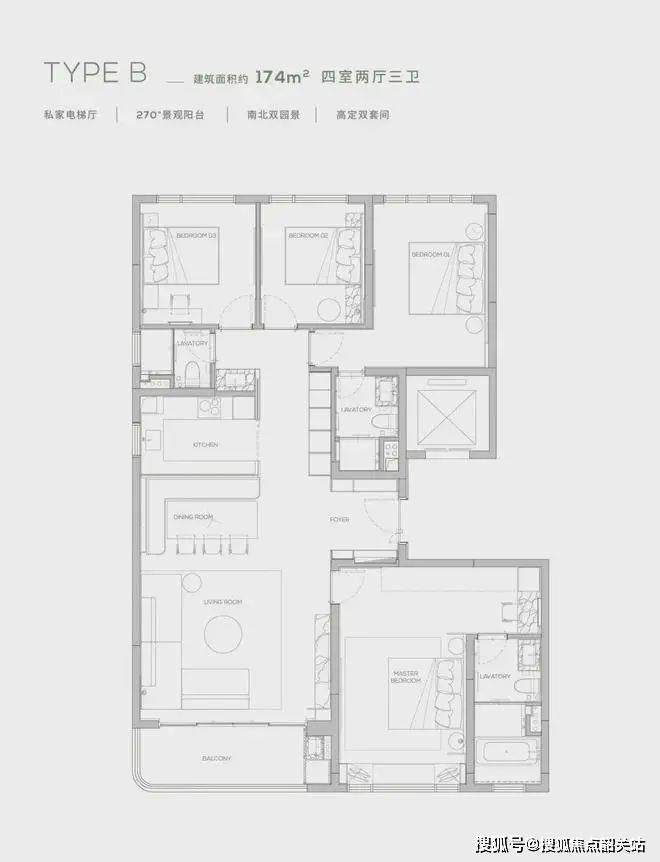 合生缦云主打145-315㎡三至五房的大平层住宅,所有楼栋均为16-17层纯板式小高层设计,专梯专户。目前主要推出145㎡三房两卫和174㎡四房三卫户型,后期还将推出250㎡以上的大户型产品。这些户型均采用餐厨一体化设计,宽厅设计提供了多种生活场景的可能性。