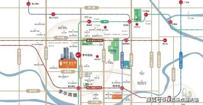 地铁优势:执掌3条地铁交通,距广佛线季华园站仅约200米,坐享2号线、4号线(在建中)。2站到祖庙,8站到千灯湖,10站到广州南,高效串联佛山各大核心区域以及广州南站。