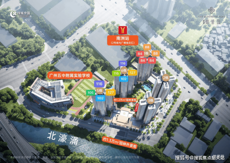 绿城馥香园坐落于广州市海珠区的心脏地带,背靠广州塔、海心沙等知名地标。该项目占地面积为41,687平方米,总建筑面积达到116,600平方米,容积率为3.86。整个项目规划有5栋住宅楼,每栋楼高32层,共计约672套住宅单位。