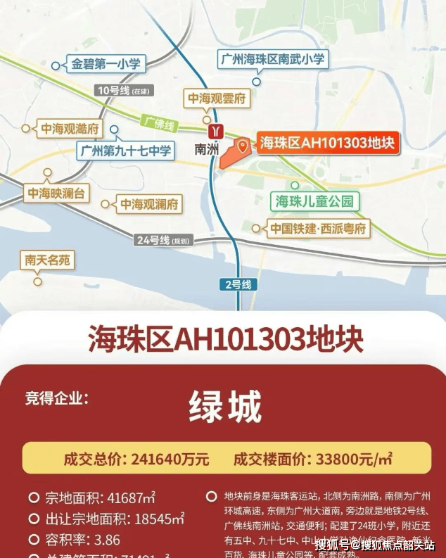 2024年12月5日,海珠老城区的海珠客运站地块被绿城以约24.16亿元总价成功竞得,折合楼面价约为3.38万元/平方米。作为一家拥有三十年历史的企业,绿城中国始终坚持用作品与城市共同成长的理念。2024年1月19日,绿城推出了两个新项目——“繁花双新”:绿城馥香园和绿城玉海棠。其中,位于广州市海珠区的海珠客运站地块正是此次推出的绿城馥香园。这也是继杭州、宁波之后,全国第三座馥香园,它继承了前两座馥香园在各自城市的辉煌成就,选址于城市核心地段,致力于打造本地的大雅之作。