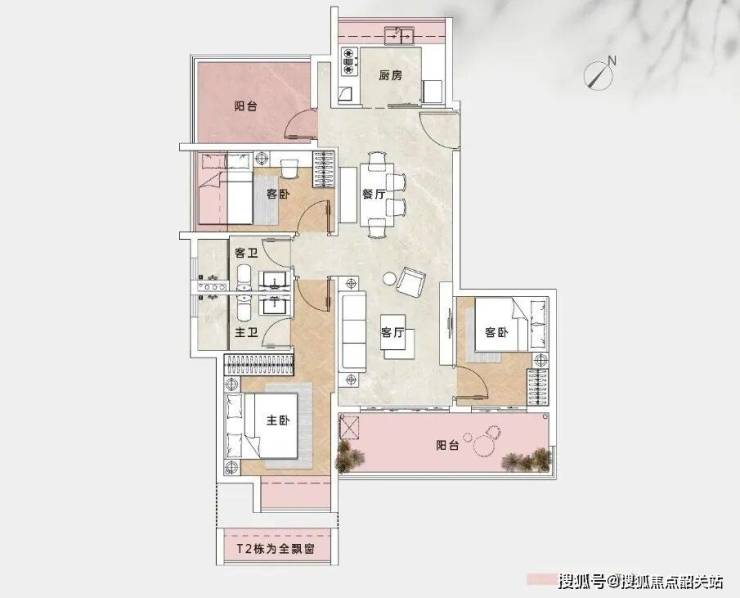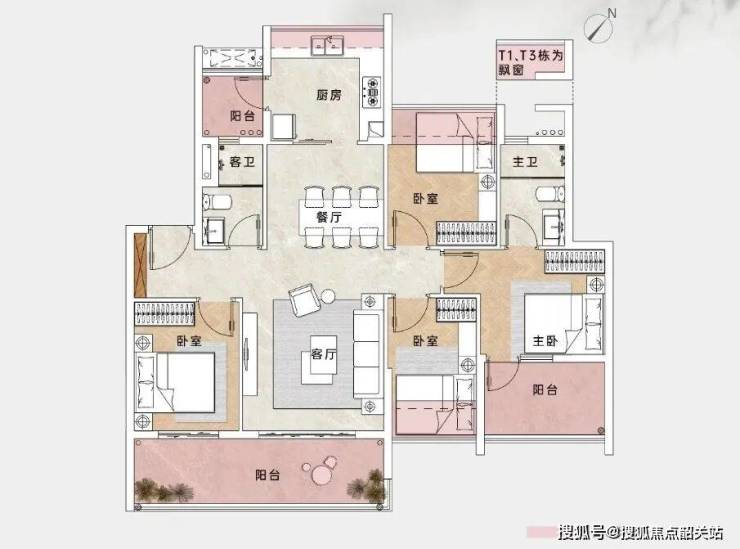 主力99㎡户型做成了3+1房,客厅两侧各设一间卧室,另外两间客卧分别靠近厨房和餐厅,动线清晰又互不干扰。主卧带大飘窗,采光不错;109㎡则升级为双阳台设计,L型厨房连通生活阳台,客厅与次卧共享景观阳台,三间卧室加客厅全部朝南,冬日阳光能洒满大半个屋子。