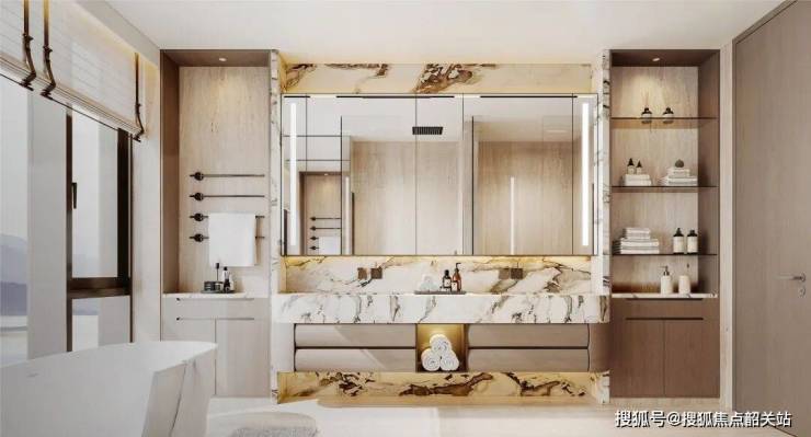 主起居室首创三合一套间设计,在卫浴间、衣帽间基础上,增设独立藏品间,专属收纳珠宝、艺术品等珍贵物品,彰显塔尖人群的品味与收藏需求。