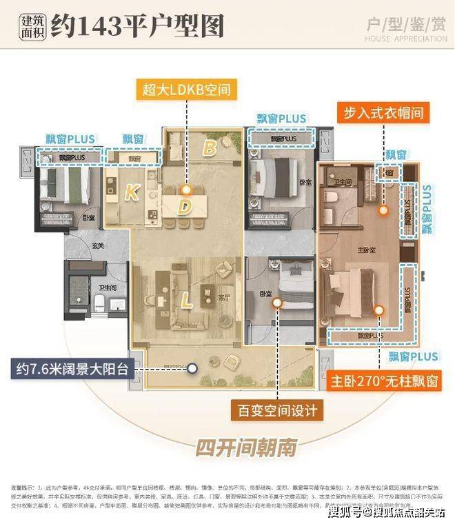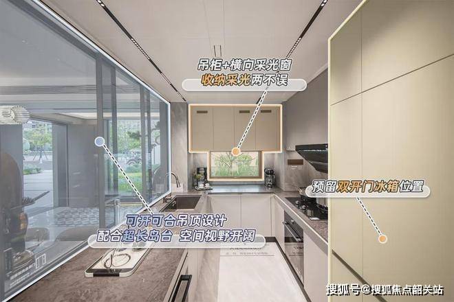 开间朝南格局,入户花园与南向大阳台形成南北对流,清风阳光穿堂而过,居住舒适度极高。客厅与多功能房相连,形成两条洄游动线,打造灵活空间。次卧与客厅间无承重墙,打开可形成约 8.2 米超级大宽厅,面积约 60㎡,满足家庭聚会、娱乐等多种需求;也可通过 L 型玻璃推拉门,灵活变换空间功能,满足不同生活场景。