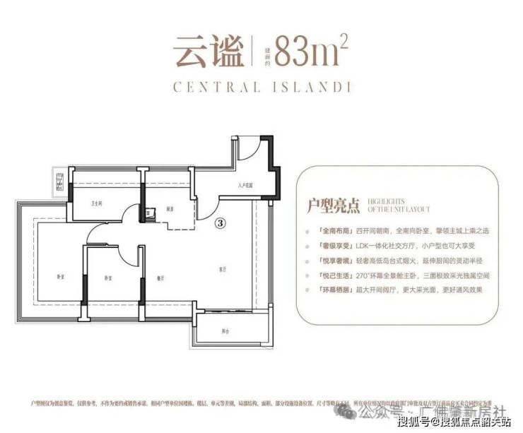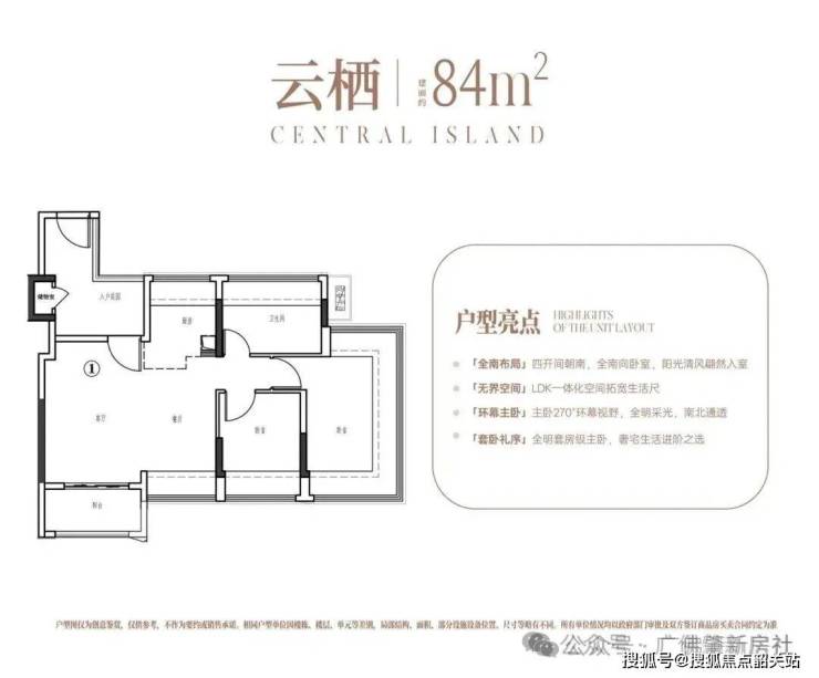 项目占地约 9.6 万㎡,总建面 16.8 万㎡,容积率 3.15,规划 4 栋住宅楼共 580 户,车位配比达 1:2。这种低密度社区设计,在白云新城北板块较为少见。首期推出的 039 地块 3、4 栋,主打建面约 88-120㎡南向户型,通过创新设计实现 “小面积大空间”。
