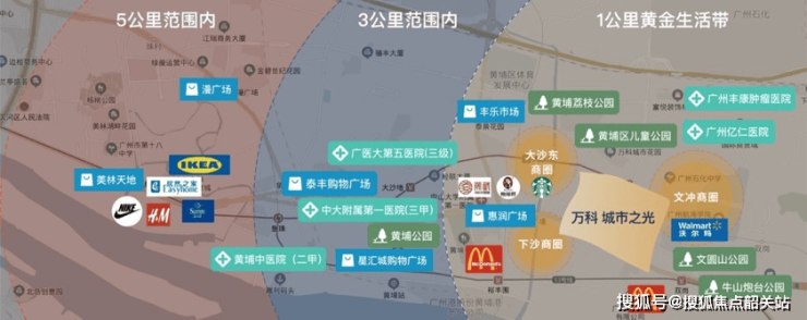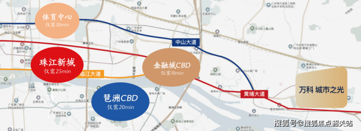 10分钟生活圈:依托黄埔大道这一核心主干道,万科·城市之光实现了与三大CBD的无缝连接。从这里出发,仅需10分钟即可到达金融城,25分钟直达珠江新城CBD,20分钟抵达琶洲CBD。