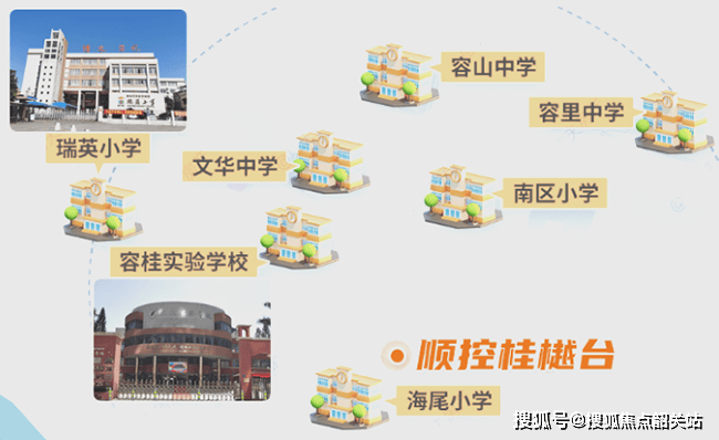 顺控桂樾台所在的容桂老城区聚集了一批老牌名校,如容桂实验学校、海尾小学、容桂文华中学、瑞英小学、容桂中学等,都是家喻户晓的优质名校。