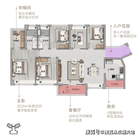 140㎡5房2厅2卫:南北对流,享受央景园林景观,豪华主卧设计。