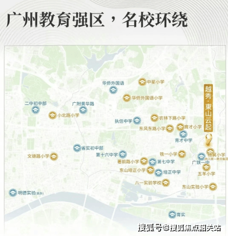 优质教育资源:对口杨箕小学(铁一教育集团成员),并纳入铁一集团管理,共享教研资源,升学路径有望进一步向铁一中学倾斜。初中阶段根据越秀区小升初电脑派位分组,可进入省实验中学、铁一中学等名校就读。