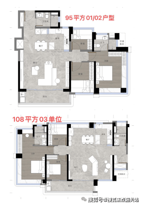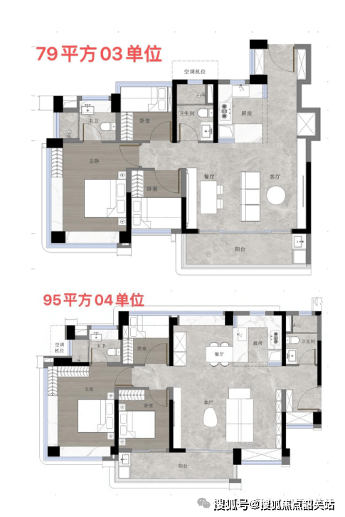 95㎡三房两厅两卫:总价 390-420 万,南向大三房,客餐厅一体化,主卧套间设计,空间阔绰,适合改善型刚需家庭