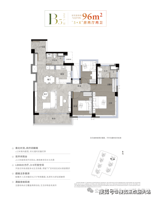 超高得房率:新规户型,无多余公摊,得房率 100%-120%,同等总价,比传统户型多享 10%-20% 使用空间