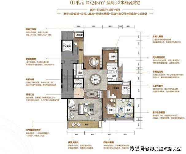 建面约 248 - 315㎡的大尺度空间,使得客厅、餐厅等公共区域显得格外开阔,无论是家庭聚会还是宴请宾客,都能轻松应对,彰显出大气与尊贵。挑空 6.9 米的设计更是为空间增添了一份宏伟与壮观,让居住者仿佛置身于豪华宫殿之中,感受到非同凡响的居住体验。