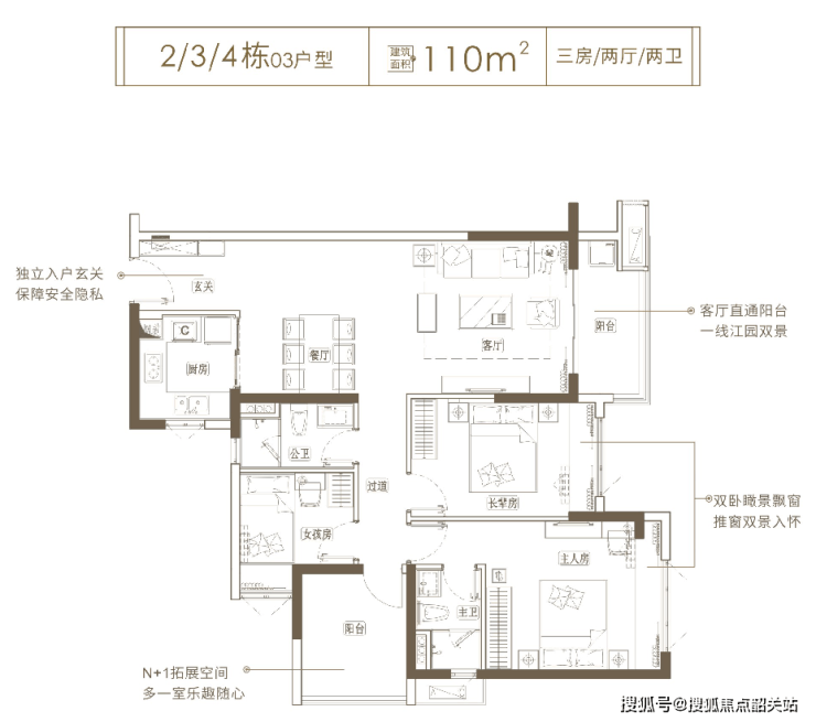 亮点:南北通透,采光充足,动静分区合理。