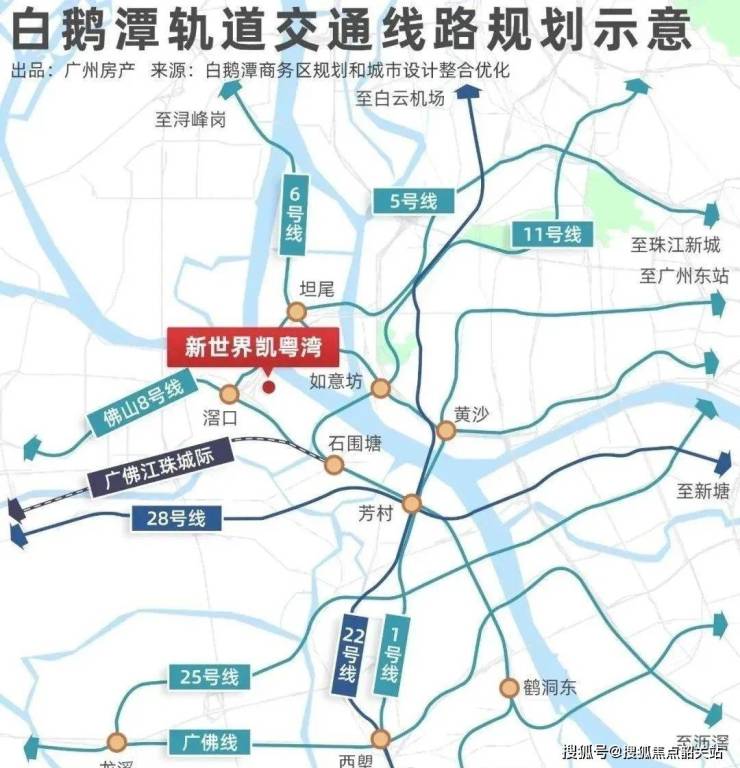 交通体系堪称立体便捷。作为地铁上盖物业,拥有地铁 5 号线首发站,以及 6 号线、11 号线,未来广州首个四地铁交汇的枢纽白鹅潭站落成后,1、11、22、28 号四地铁交汇,可联通佛山、深圳、东莞等湾区城市。自驾方面,地处白鹅潭 CBD 核心区百米范围,坐拥双大桥(珠江大桥、鹤洞大桥)、三隧道(珠江隧道、洲头咀隧道、如意坊隧道),待如意坊隧道 2024 年 4 月开通后,5 分钟即可上内环,15 - 30 分钟内舒适通勤中心城区各地,无论是日常出行还是湾区内往来都极为便利。