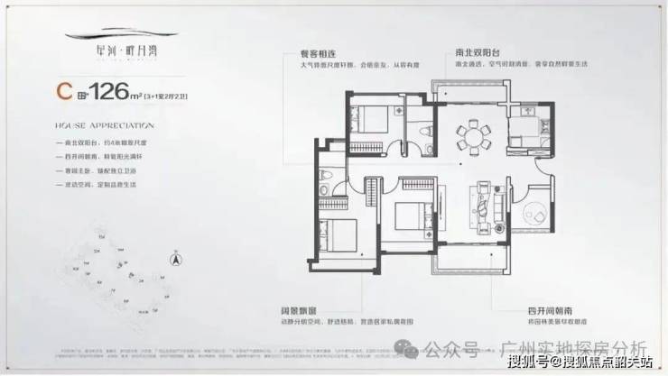 对于追求高品质生活的改善型客户,星河畔月湾提供了113㎡至126㎡的大户型选择。这些户型普遍采用了南北通透的板楼设计,前后双阳台,空气对流效果极佳。